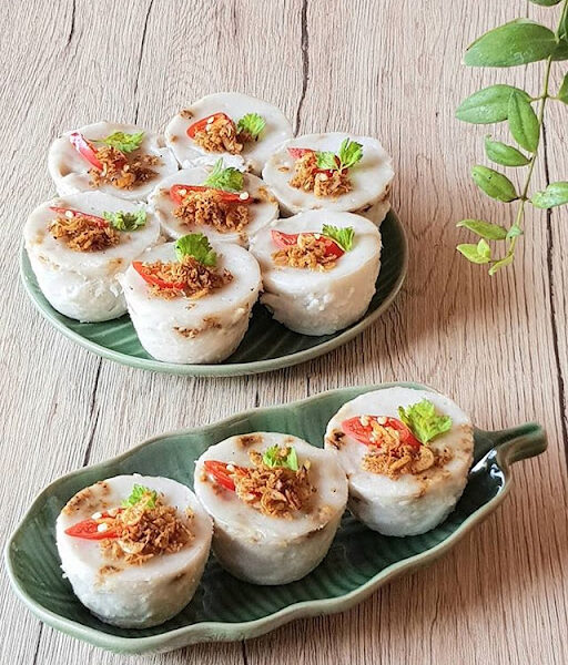 Siapkan bahan isiannya dulu: Panaskan minyak, tumis bawang putih, cabe merah sampai layu, masukkan ebi, aduk terus sampai ebi mengering. Matikan api. Dinginkan sebentar. Haluskan ebi, garam, gula dgn blender. Tidak usah terlalu halus. Sisihkan. Campur tepung beras, gula pasir, garam, merica bubuk, tuangi santan kental hangat, aduk rata, lalu tuangi santan encer mendidih, aduk sampai licin & tidak bergerindil. Tuang adonan ke dalam cucing yg sudah diolesi minyak setengah saja, lalu beri 1 sdt isian di tengahnya, tutup dgn adonan lagi sampai hampir penuh. Kukus sampai matang sekitar 30 menit dalam kukusan yg sudah mendidih airnya. Angkat, biarkan dingin, lepaskan dari cucing. Taburi sisa tumisan ebi, beri irisan cabe merah & seledri. Sajikan. Resep dan Gambar By @dapoersikoko