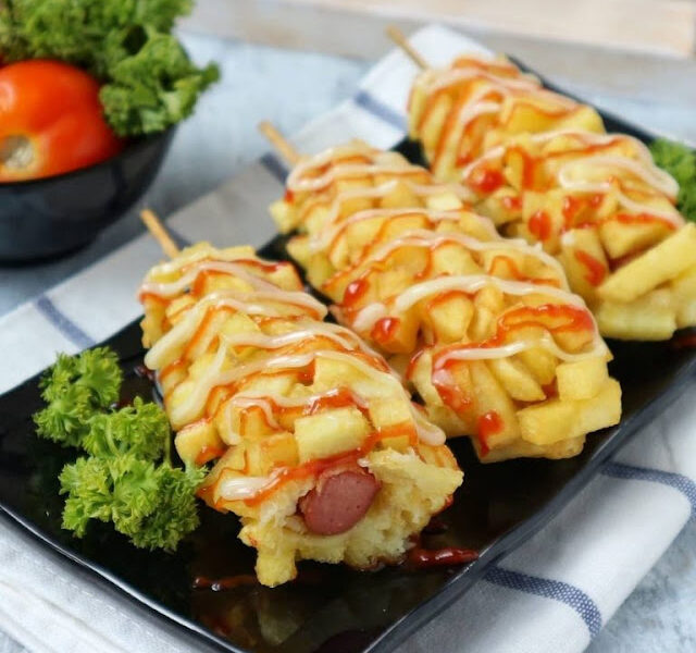 Resep Sotang Sosis Kentang – Jika kalian termasuk salah satu penggemar Drama Korea, pastinya sudah tidak asing lagi dengan cemilan yang goreng yang ditusuk seperti sate ini. Yups, nama populernya yaitu sotang atau kepanjangan dari sosis kentang. Cemilan ini jika di negara korea sana dengan mudah ditemukan di pusat street food Korea dengan nama Kogo. disana sotang seringkali dinikmati bersama tekkebi hotang, kimchi dan juga lelehan keju mozarella yang membuat sotang semakin lezat untuk dinikmati.